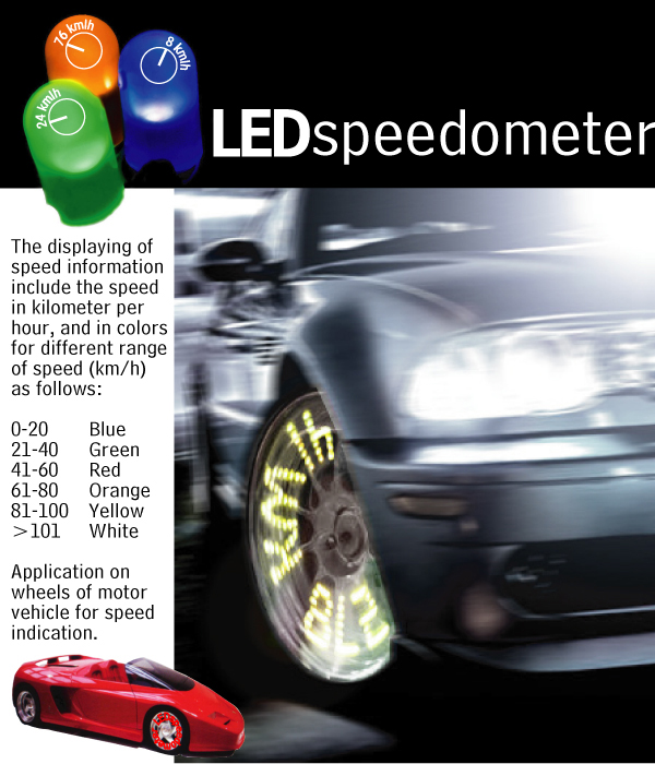Application on wheels of motor vehicle for speed indication. Application on sports activities for judging & a easy way of record of performance & indicator for training as well.