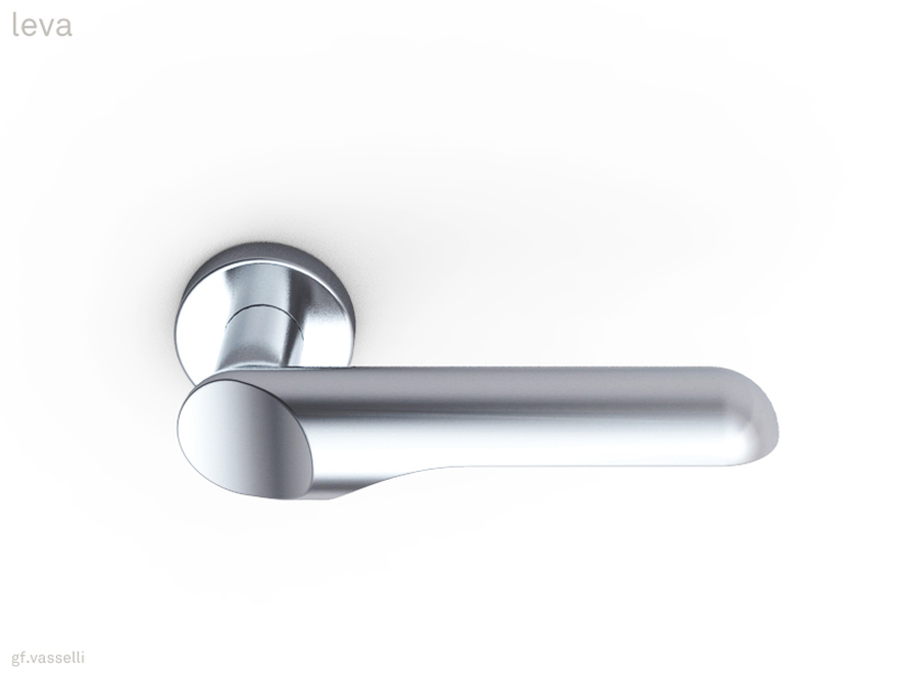 leva: door handle conceived as door interface. the door handle has been rendered much lighter as compared to its original and in any case, plain shape; the purpose of this is increasing affordance and ergonomics. the concept behind this door handle can be made more evident by working differently those surfaces rendered lighter. a well-built but not rigid door handle is thus developed, which is suitable to adjust itself to the way one intends or needs to open the door.