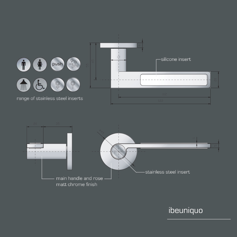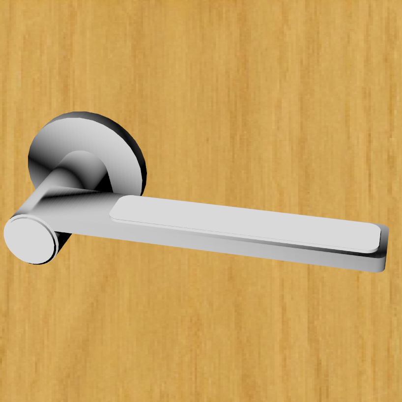 on coming up with designs for this handle, i looked at different everyday objects in our working and living environments. different materials, forms and functions. the form of this handle is influenced by computer product design, with its simple but contemporary shape. The materials used: stainless steel, matt chrome and silicone. silicone for its soft touch, matt chrome for its subtlety and polished stainless steel for its crispness.