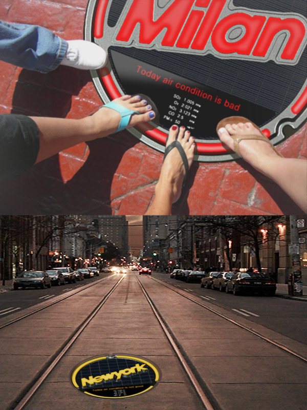 So If there is a manhole cover that has a system for information of air pollution on the footway and road, we can see the present state of air pollution any place and any time on walking or driving even in a building.