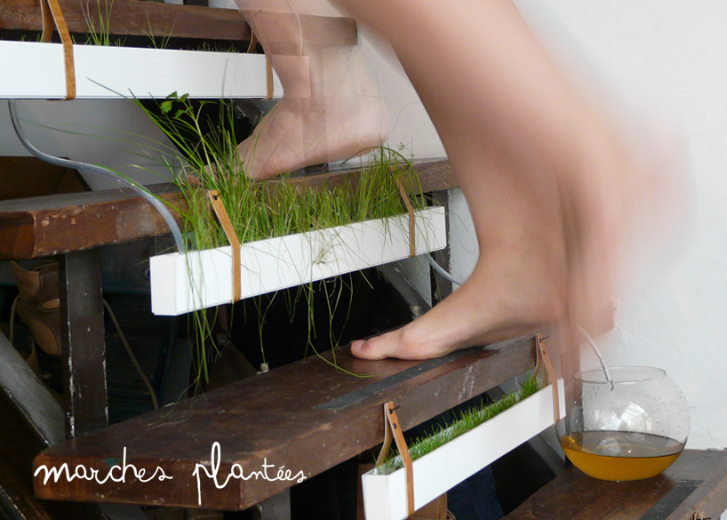 Conceived within a wider demarche edified around the theme of the located sight, “Marches plantées” is a sensitive installation created to reenchant daily habits in a home.