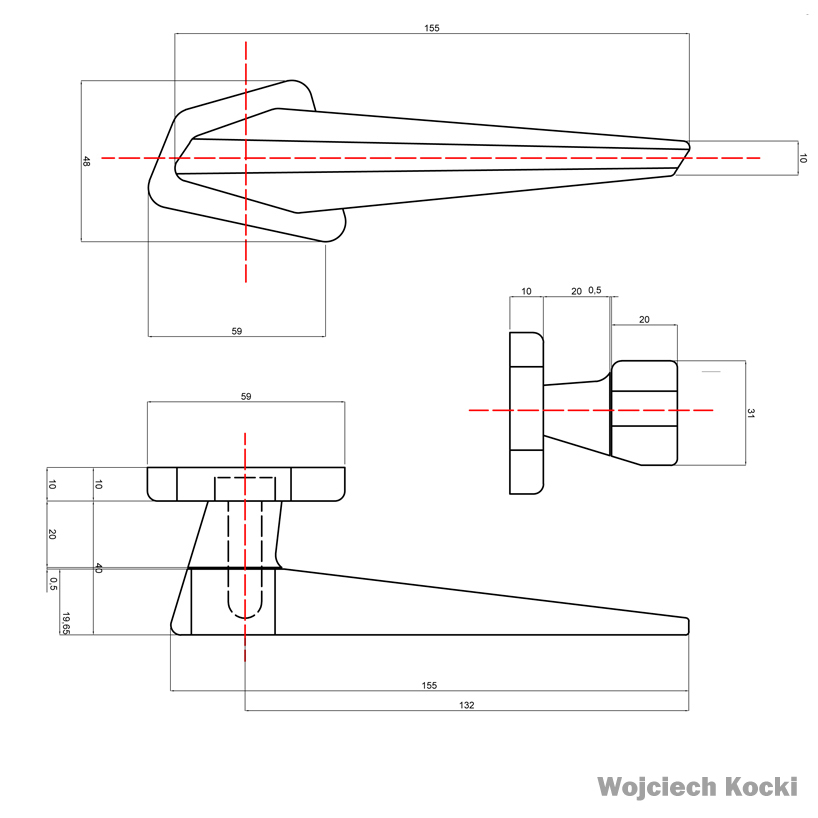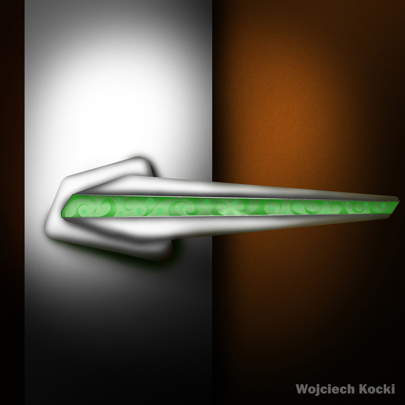 mainly the idea of a project is concentrated on opportunity to fit the peaploe's needs, expectations. in very simple and elastic way handle can become a unique masterpiece. Shape of the knob is elegant and simple. handle is composed of two main elements. one is attached to the door and second, is a moving part used for open. both of this are made from mat steel, (steel can be optionally painted in some color but also it looks like mat steel). there is a removable panel in a moving element of a handle, on which can be placed printed pattern designed by a client, name of a company, wooden panel or panel made from some other material - it depends on a client imagination. classic model used for mass production is a mat steel handle with a chrome panel suitable for any interior.