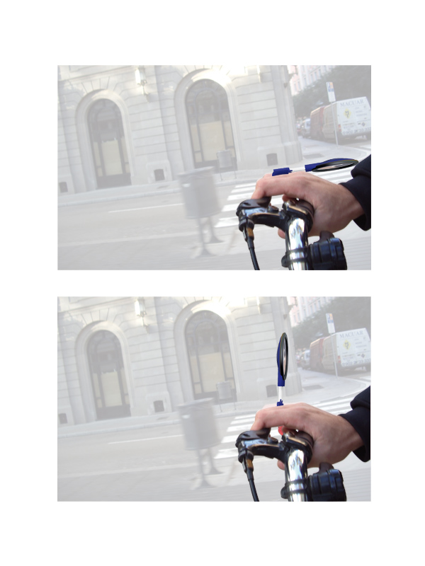 Mensaka is a rear view mirror designed to be attached to your ring finger and little finger. By moving them you can control the position of the mirror and therefore control what is happening around you. Control first, safety first.