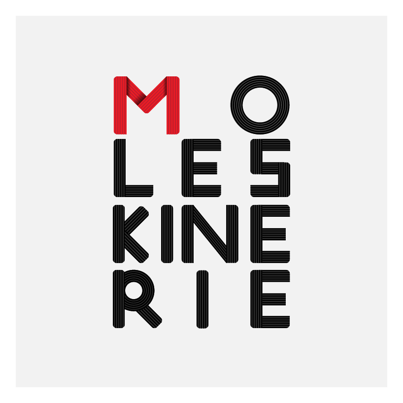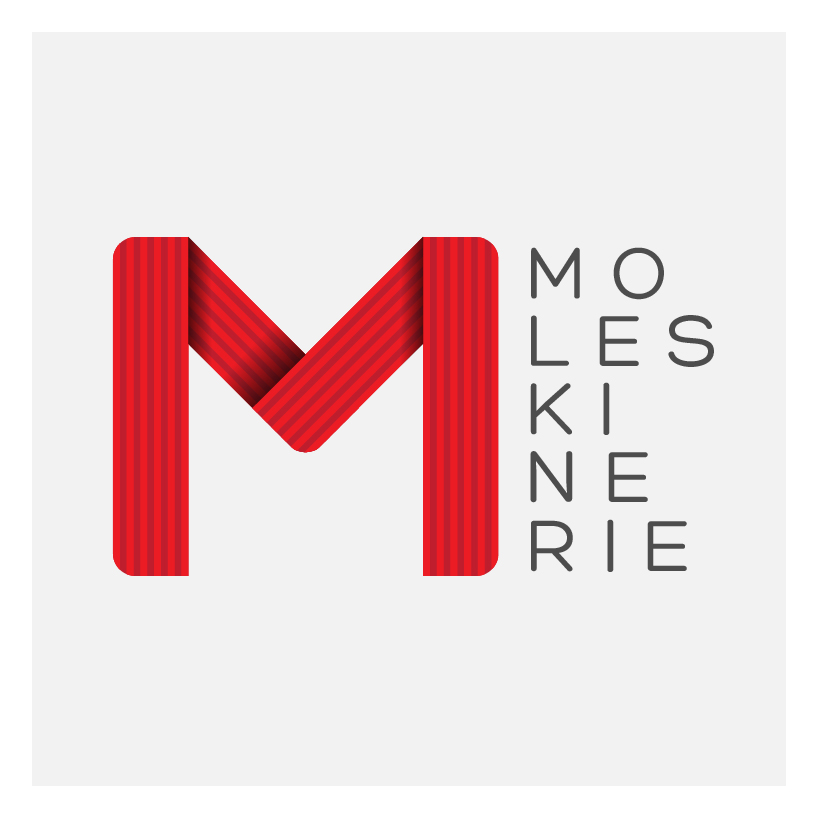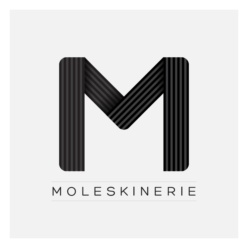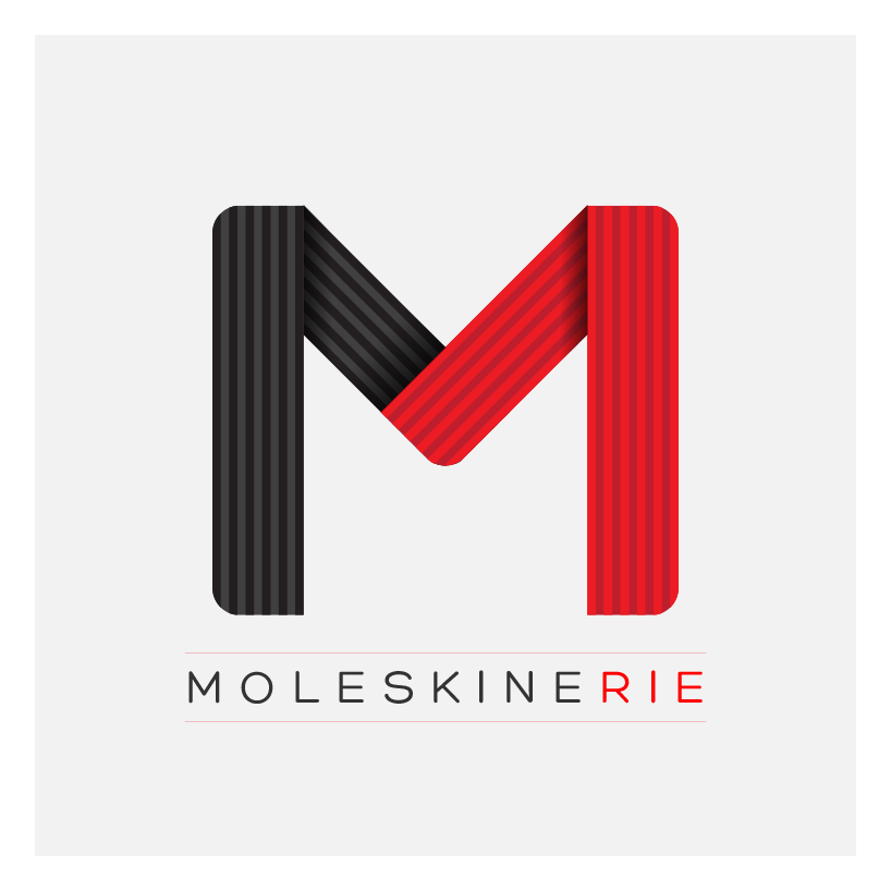 The project (The M images and the "moleskinerie" word "moleskine takes 2 elements, the curved lines of the contours of the books and the spring, in a letter" M "that is easy to remember.