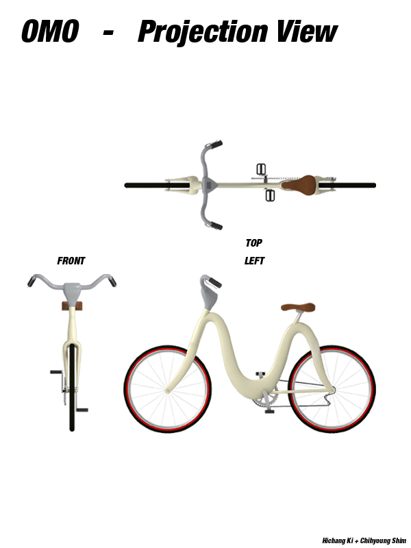 Apart from the meaning of shape, the frame has various structural strengths. For giving the forces as variously, streamlined frame has different width of cross section parts. Especially we considered the pedal’s cross section, which connects the front and the back of bicycle. For this part, we made the frame cross section wide, finished the simple design without reinforcement frame. With these structures, the bicycle’s central weight goes down – so the security of driving is improved, also it helped to the old and the infirm or the women for using bicycle comfortable.