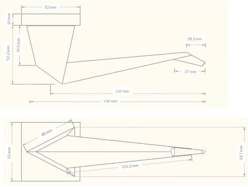 Finally, we mention that our handle is made of aluminum and partly painted black and white. It could be manufactured as a single piece, cast in a mold.