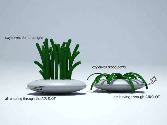 The ‘Oxy leaves’ inflate by suction of fresh air from it’s