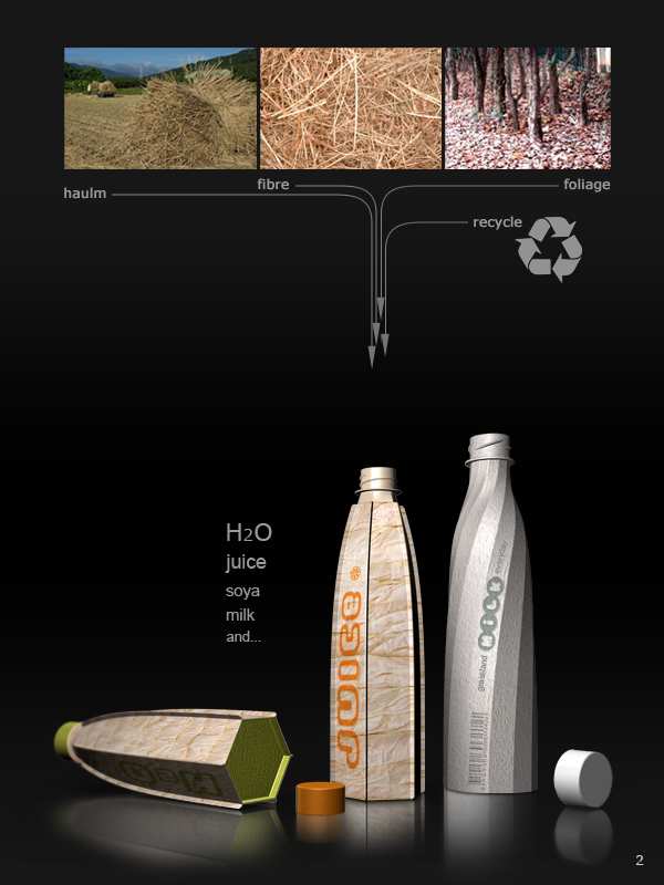 This kind of bottle is basically made of degradable paper which can be made by recyclable organic matter like straw, leaf etc. What’s more, it takes a short time to degrade and the leftover of it won’t destroy the component of the soil. That it can minimize the environmental pollution makes it an ideal substitute of plastic.