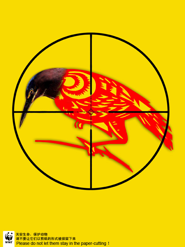 Wild animals are our friends of human beings to protect animals is to protect our kind. Poster design selected to represent sky, the ground running and the water for three representative animals, they are being hunted in different ways, and slowly decreased and disappeared after the graphic images can only be seen. To meet the various interests of mankind to enjoy the delicacies, wearing gorgeous fur, but also led to the extinction of a large number of wild animals and ecological destruction, Is this what we want, "harvesting" it? The main graphic posters in the form of paper-cut, intended to explain to the protection of wild animals, wild animals do not let one day form of paper-cut can only show in front of people.