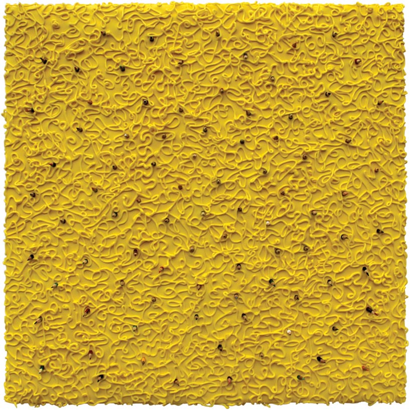 04. Labyrinth. Second Life. 2012. silicone, pencils, yellow Pigment, glue, mixed media on canvas. 82X82X10 cm.