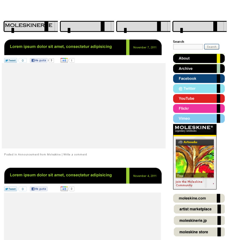 this logo represents the moleskine’s capability for being recognized, it plays with a very abstract image of the moleskine itself that could never be mistaken with any other notebook.
