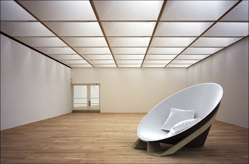 "refuge" is a lounge chair, proposing a re-interpretation of style presented on thai furniture. It’s a very low chair with a very wide seat, where the user can define his seating position by moving the pillows. its dimensions are 1200x1135x1024 mm.