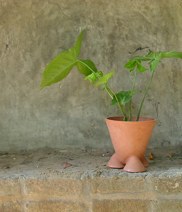 'Rocket' is a terracotta planter that can be used in two ways. Smaller plants can be planted in the small pots and bigger plants can be planted in the larger pot. This planter is made by attaching three small cones thrown on the wheel to a larger cone.