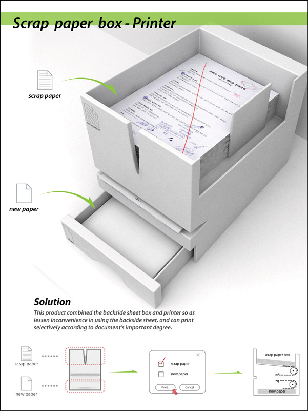 This product combined the backside sheet box and printer so as lessen inconvenience in using the backside sheet, and can print selectively according to document’s important degree.