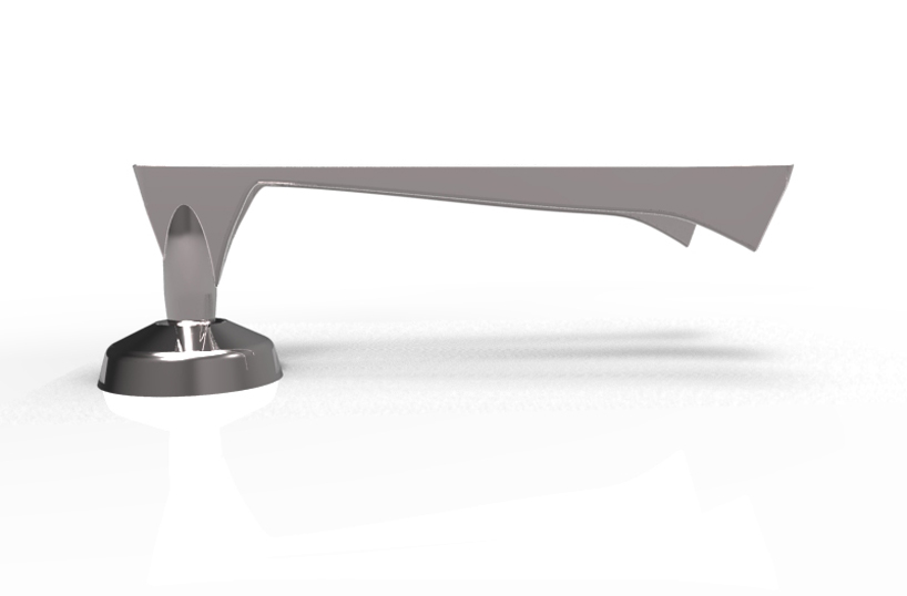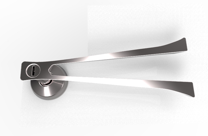 this design was created to give the door handle an aggressive look while keeping a delicate nature to the product. This delicate nature gives the user a sense of invitation to interact while the aggressiveness of the design draws the viewers from afar. The body is made of stainless steel to give the thin handle strength. It can easily be fitted on already existing door mechanism and includes enough space for a key for security.