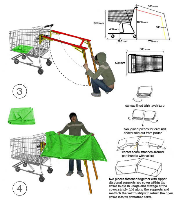 shelter, especially around a cart typology that is already regularly used by the homeless.