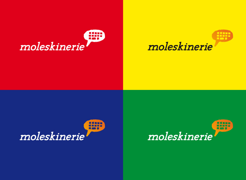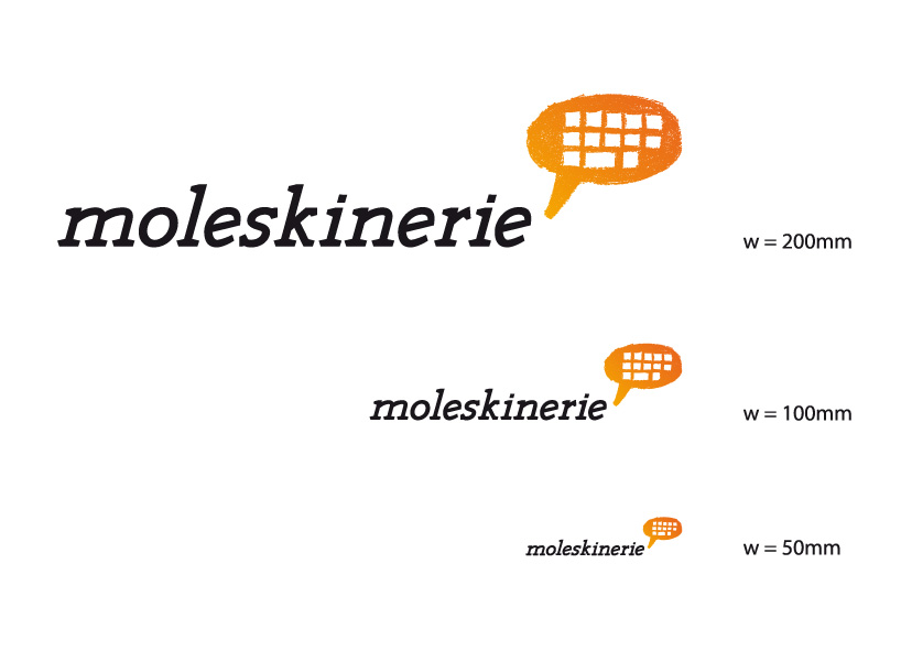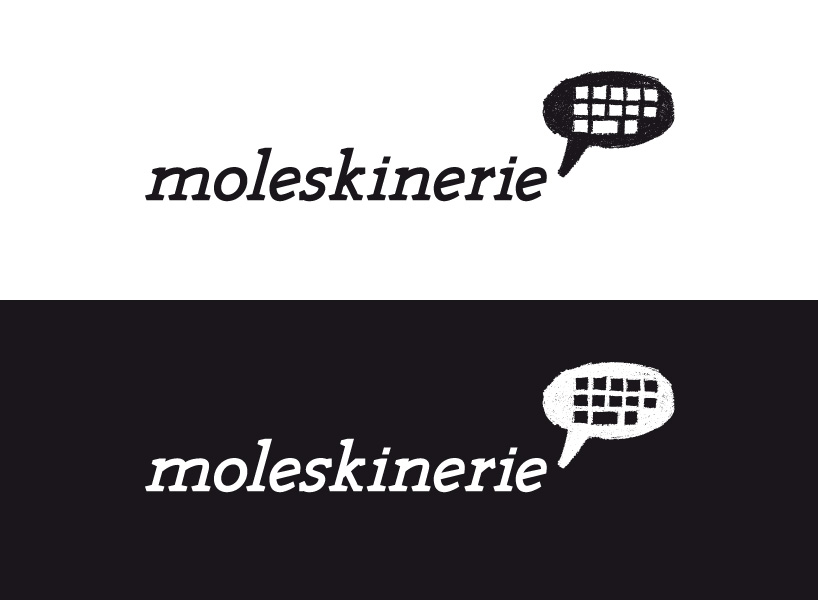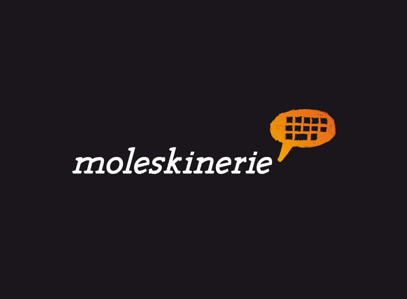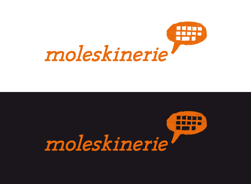 since “moleskine” is about making the famous notebooks, i decided to go with a dynamic and sort of “sketchy” logotype and wanted it to be unique, so i made it myself . it presents the movement of people who carry their notebooks and make their drawings, sketches, ideas and plans in them. with the sharp edge serif letters i wanted to make that movement and dynamic even more powerfull. the drawing of the comic cloud keyboard in center stands for the “moleskinerie” blog. it’s like a very fast drawn sketch telling a story of online communication. the cloud is filled with orange color because it presents the dynamic audience and rich contet of posts and membmers writing them.