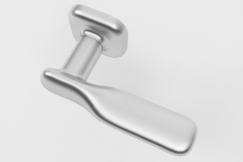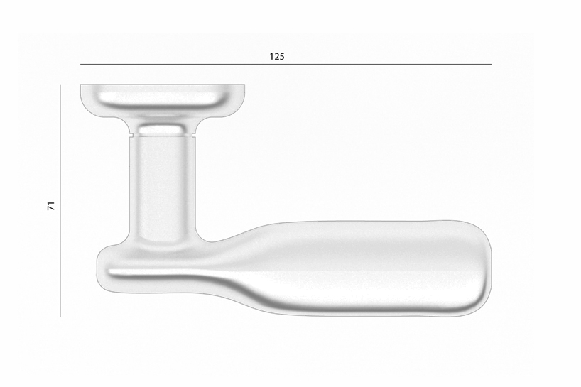 this organic shaped handle allows for a smooth and ergonomic fit to the hand. "unthreatening softness" was the theme we chose to explore to make the end product seem as engaging and inviting as possible. after all, like dressing for a first date, one must bear in mind that the handle of a door give you the first impression of what you might find behind it!