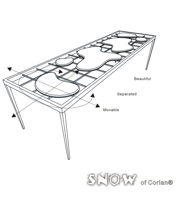snow by wh yen from taiwandesigner's own words:Simulate the surface of the table as the feeling of snow. It is smoothly movable, separated for different functions, and beautiful. prototype illustration detail