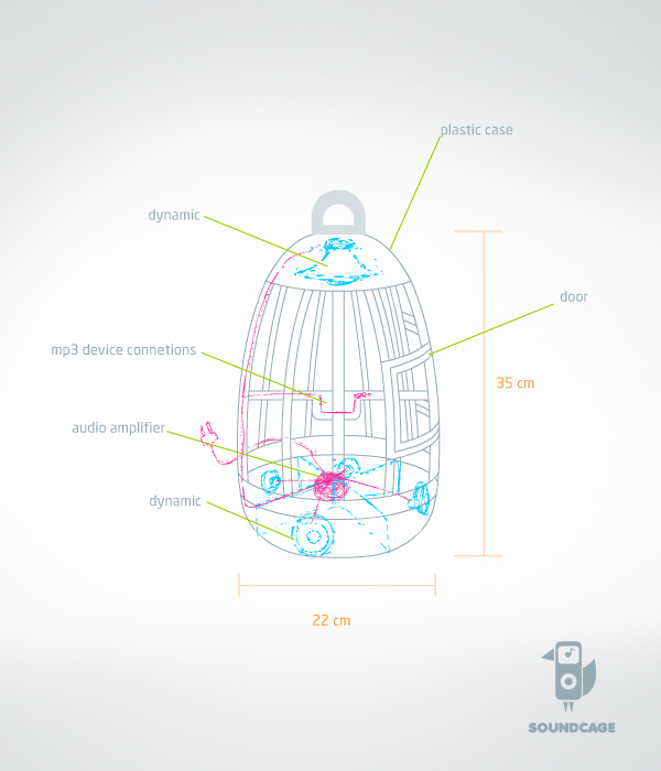 In ancient times, people enjoyed singing of birds. Present we enjoy a sound from various mp3 devices. It’s funny concept for small sound system for mp3 device.