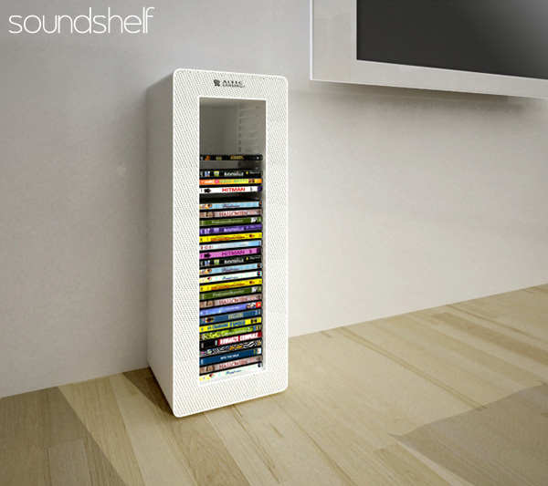 The object becomes the item of furniture by a simple arrengement of dvd and books.