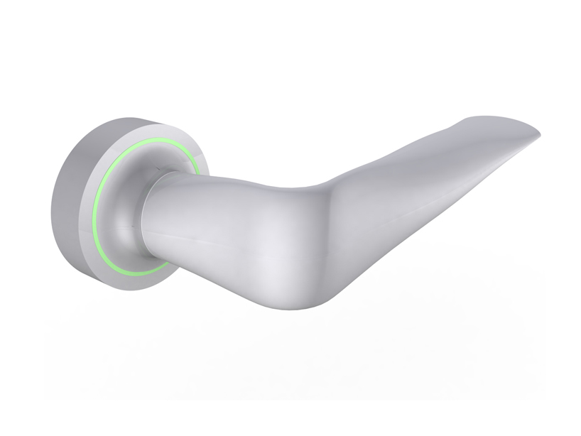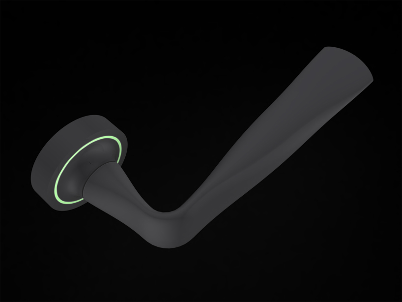 the door handle “straw“ is a simple and ecological idea that can be produced from a steel or aluminium pipe by cold production processes (bent and pressed or hydroformed). it is also easy to be found in the darkness thanks to the phosphorescent hoop around his axis of rotation, which loads with ambient light.