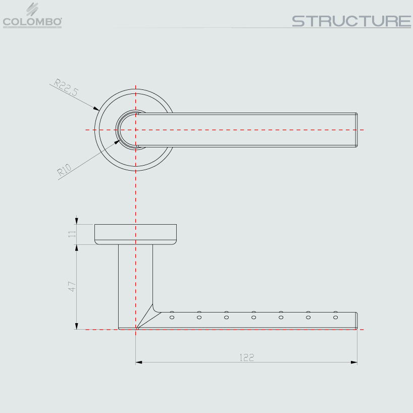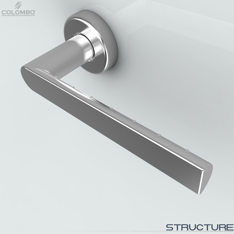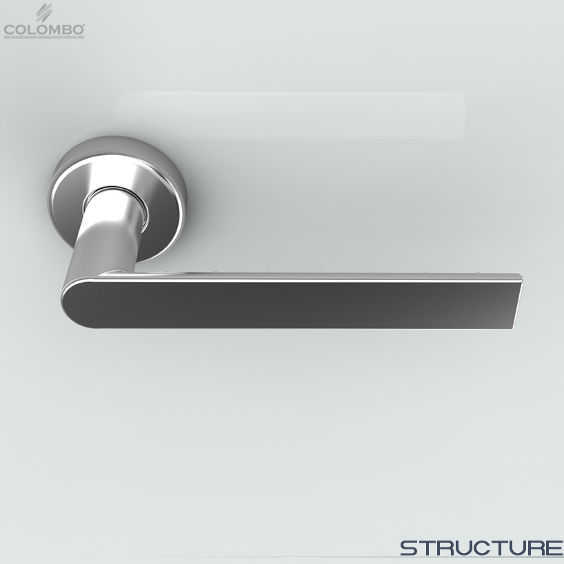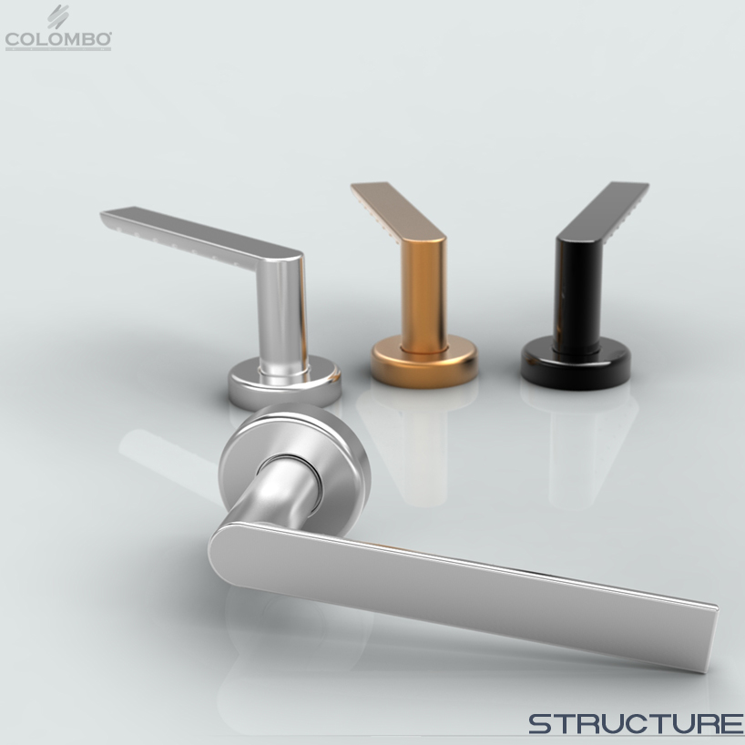 The way of pushing or pulling causes the different force and directions when using doors. By observing this behavior, I try to present the image of push and pull onto the form of handle. “Structure” is constructed of simple and clear geometric line, showing the plane expression of force direction when pushing door; on the other hand, the half-ball curve presents the force direction of pulling door, also preventing slippery and enhancing feel by simple dot. Instinctive design concept and simple form are the idea and demand of “Structure”.