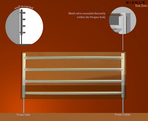 Inspired by polar glaciers, the SubZero is a dramatic radiator like no other. Gleaming chrome rails timelessly suspended within an attractive Perspex body combine to produce a striking radiator with outstanding practicality.........