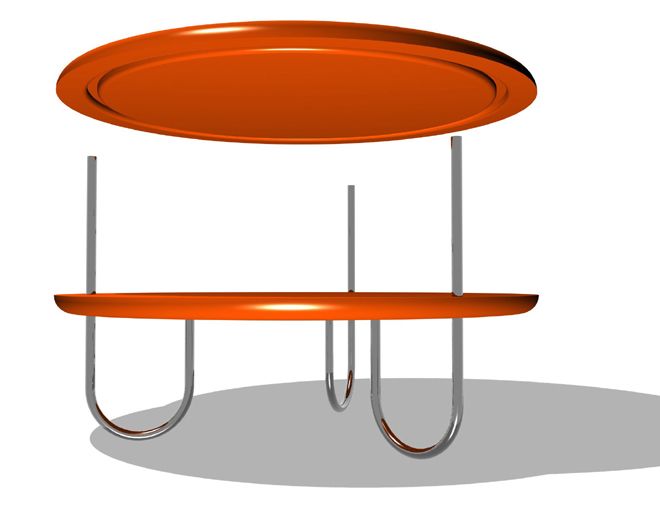 Table TRES MLD is a low cost production product incorporating different and contrasting materials: stainless steel, lacquered MDF or temperate glass. Each material is represented in the piece of furniture by an element: stems, inferior top and superior top. These are manually united for a fixation system that works for simple fittings, free from threads, screws or any other device. In the version with two tops in lacquered MDF, the superior possesses a lowering and, being “free”, it can be removed to serve as tray. Available in five options of colors: white, blue, yellow, orange and red.