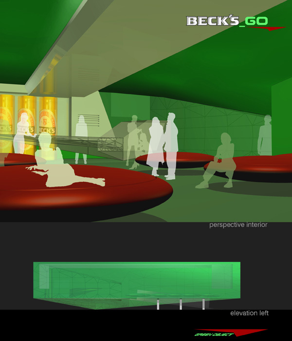 We propose a green, luminated, sharp edged, high-tech sculpture for the new Beck´s outlet.