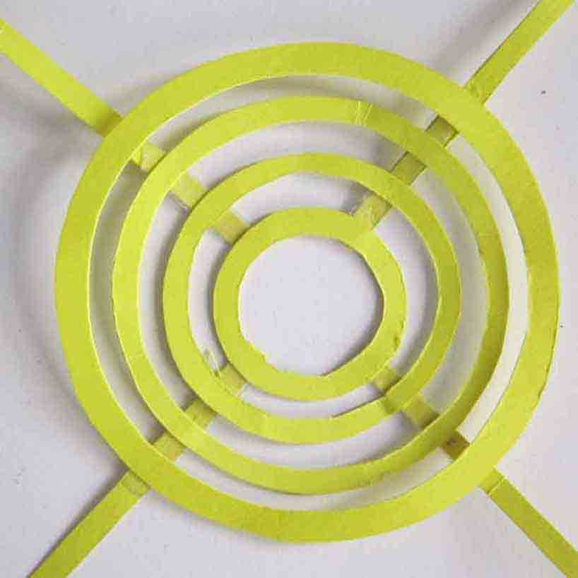 the ten concentric circles - 5mm in diameter, ranging in width from 60mm-100mm are fixed (welded or glued) to four 5mm tubes should provide enough robustness for constant use. the handle is fixed to a 20mm hollow tube (2mm thick) which is in turn, fixed to the door rose, using standard fittings. there is scope for the ‘cage’ to be developed in varying ellipsoid shapes and colours. the use of materials is minimal and it should be strong and lightweight.