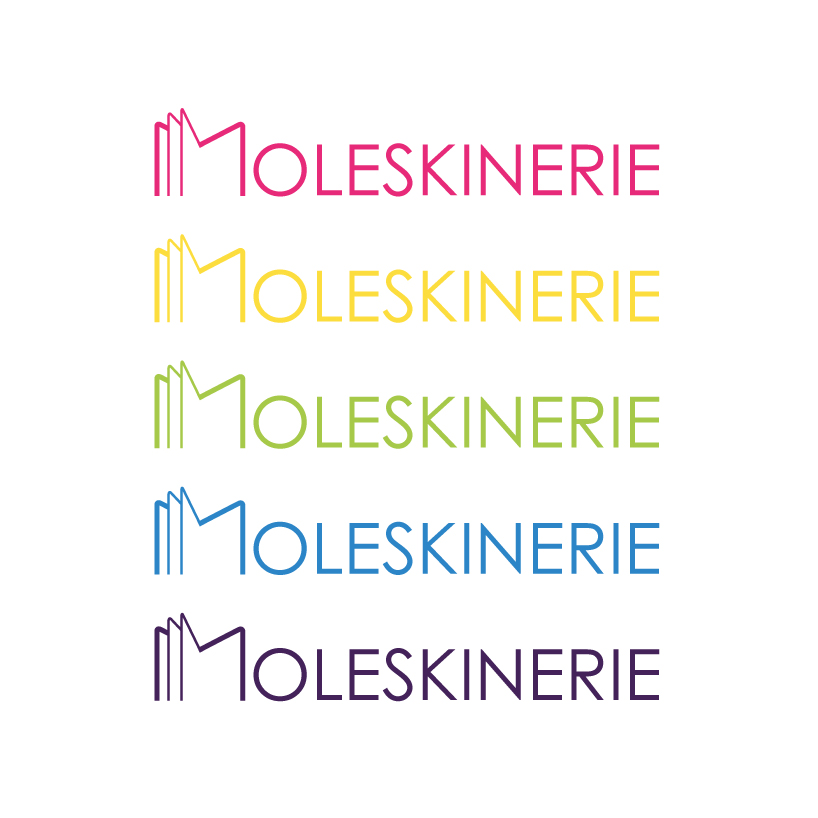 the rest of moleskinerie word is written in a sans serif font (century gothic) that contrasted with the original moleskine font, an academic bold serif font reflecting above all the history of the brand.