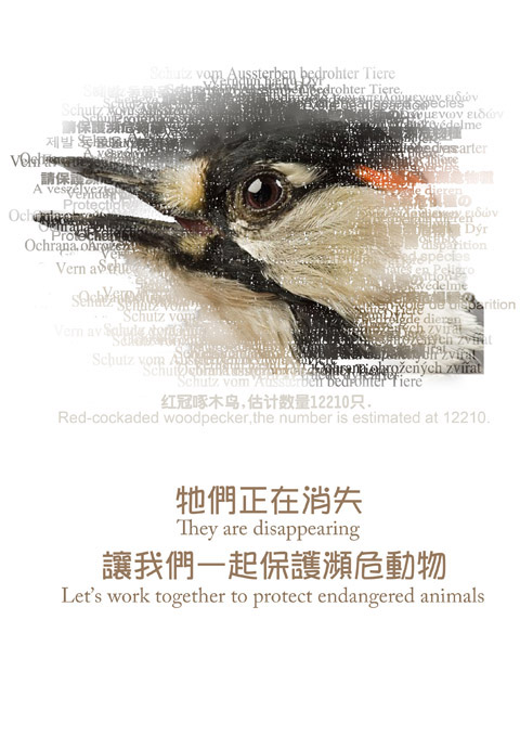 they are disappearing by 航 卫 from chinadesigner's own words:they are disappearing,let's work together to protect endangered animals. mexican spotted owl red cockaded woodpecker santa catalina island fox