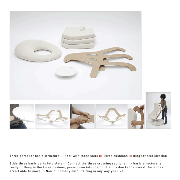 – 2d becomes 3d. This way production process and transport become economic. Trinity is quickly and easily put together by the buyer.