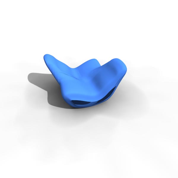 The chair is formed from ABS plastic by blowing, technology suitable for mass production. Seats are covered with thin non-slithery skin. Complex curved surface is relatively rigid, but springy due to side holes.