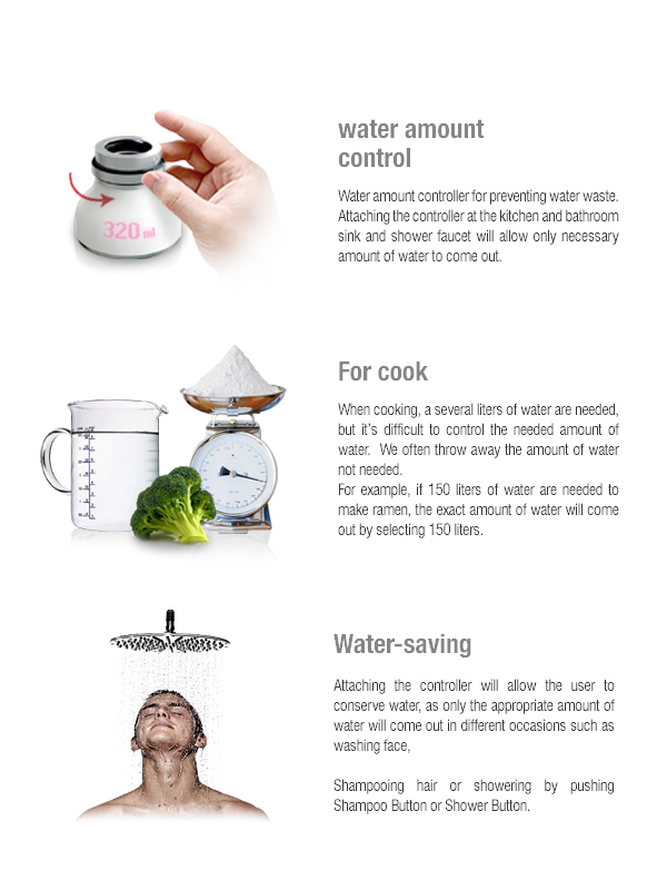 Also, it offers the convenience of informing the user of the accumulated amount of water used through the display during a certain period of time. It allows the user to also compare the amount of water conserved compared to the household that has not attached the controller.