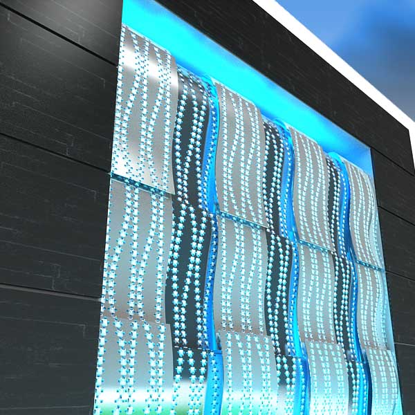 The people get used to perceive the waterfall as something quite dynamical. Therefore an illusion of water falling is arising while we are looking at this project. The crystal as a material (substance) is similar with one of water condition. And as a result the crystals were integrated without any efforts into this model; it is the main piquant idea about this design project. The crystals are just what attract our vision first of all.
