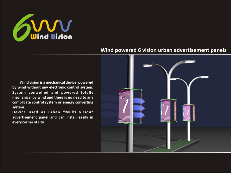 Wind vision – 6 vision wind powered urban advertisement panels