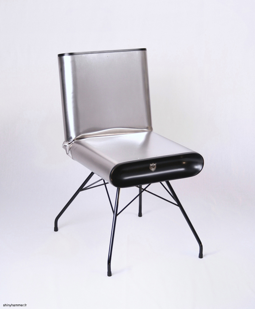 this chair is the result of a manufacturing process developed by shiny hammer called c.i.m. which is aimed at using a bending process which is rough yet sophisticated.