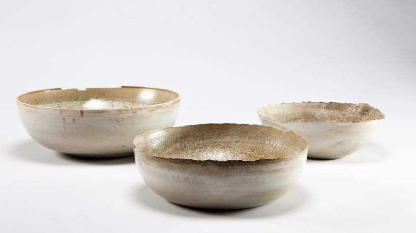 cement bowls made by inserting cement into a balloon and then inflating another balloon inside of it