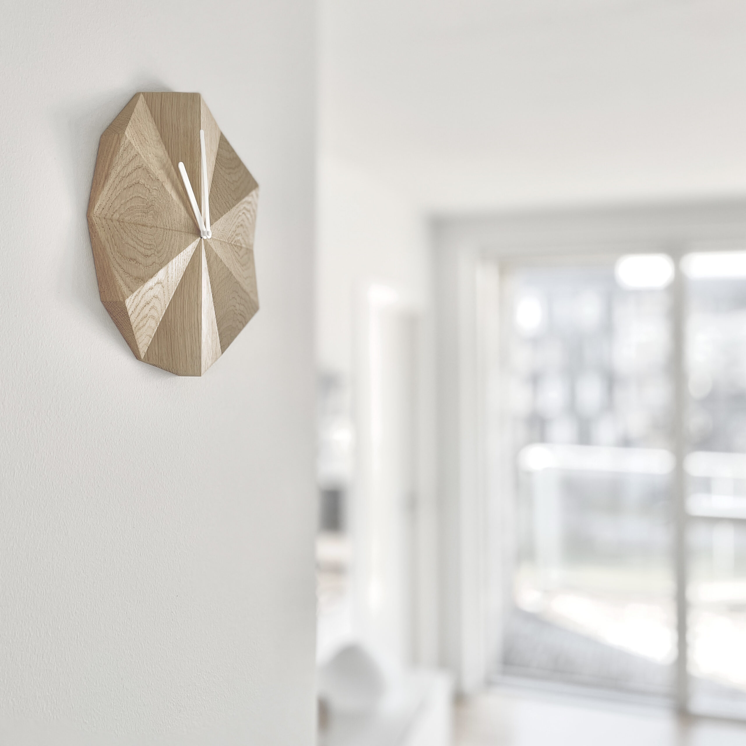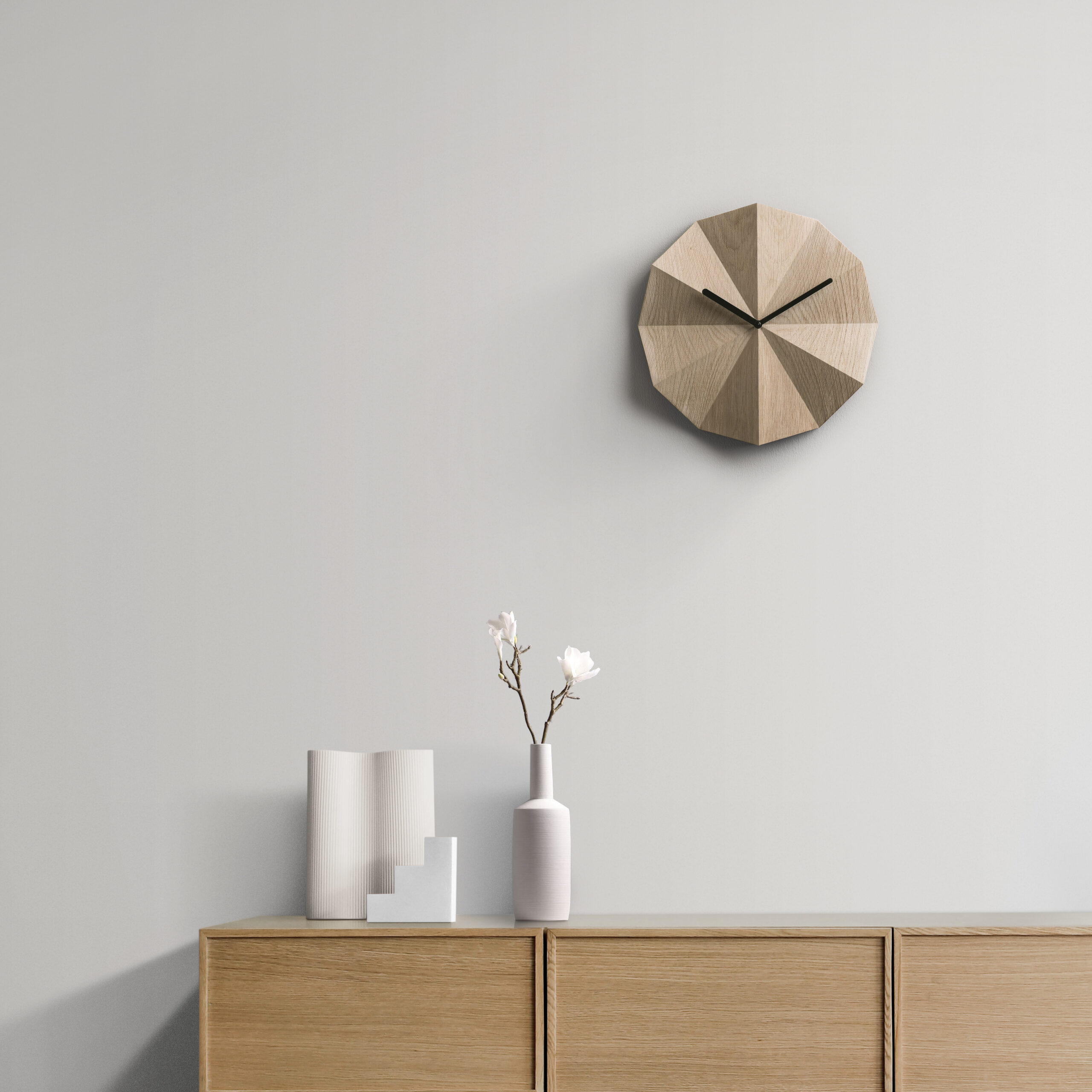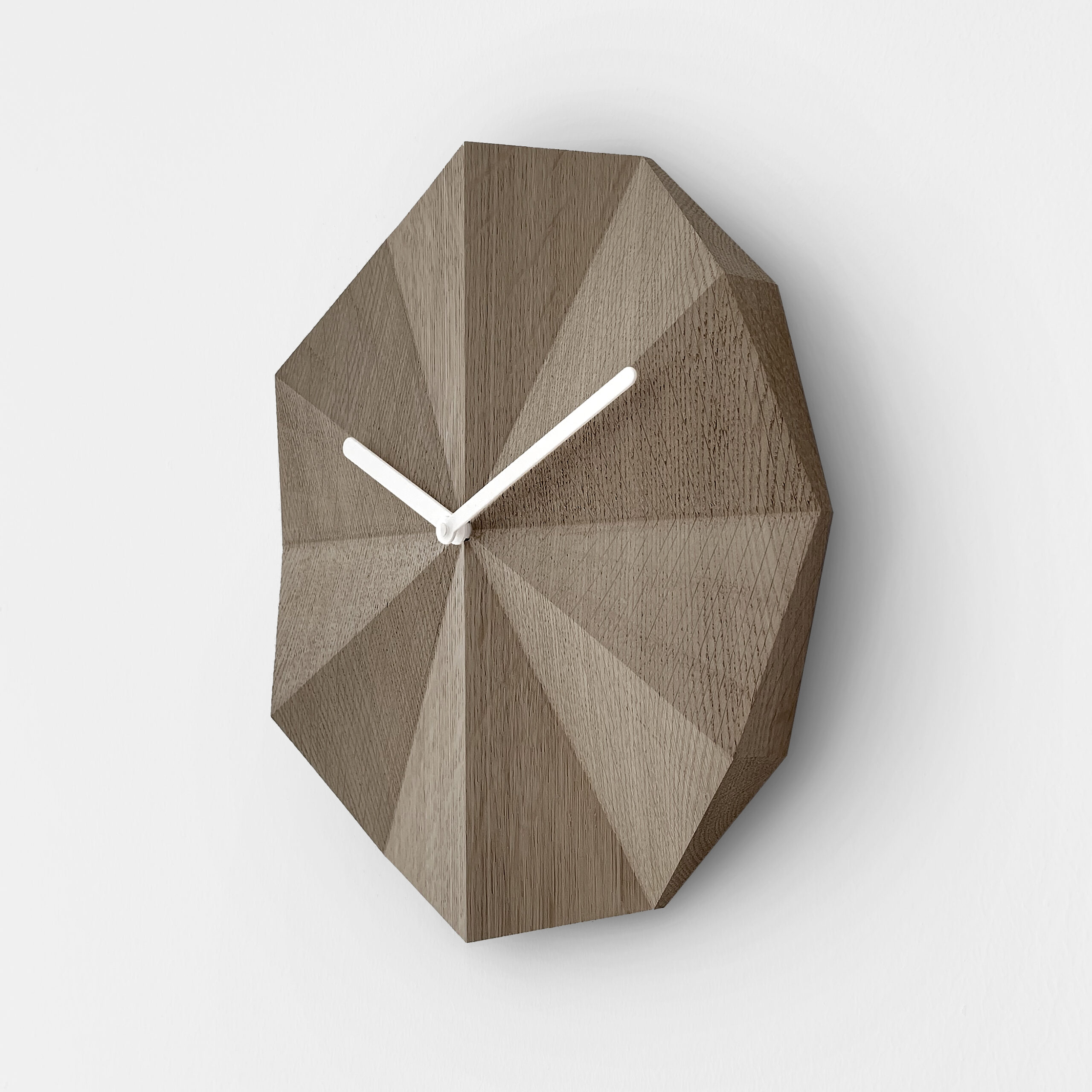Inspired by the sundial, Delta Clock tells time with the help of light and shadow. The folds in the surface indicate the passing hours of the day and create different shadowplays when exposed to light.