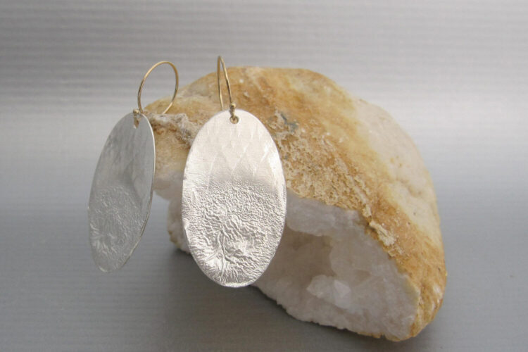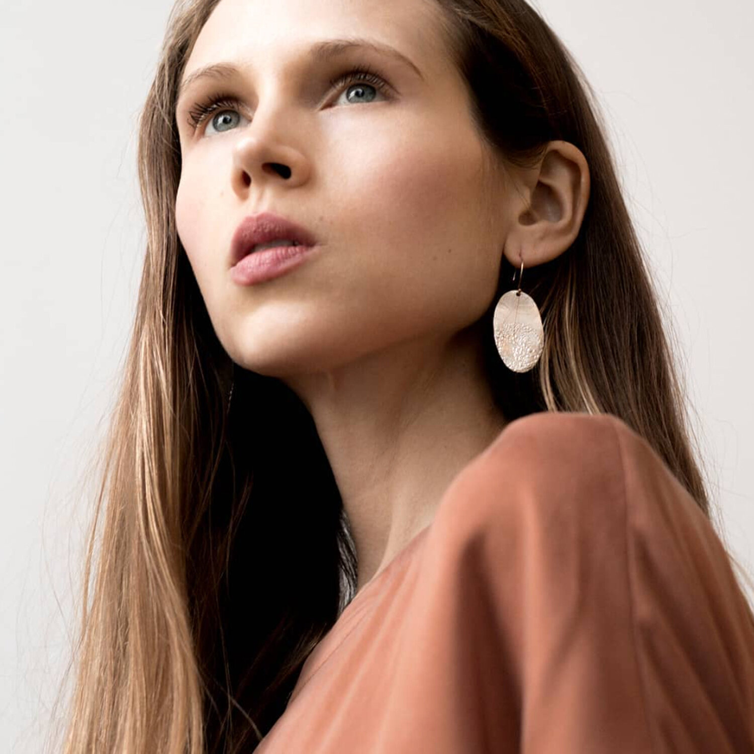 Materials: the earrings are handmade in sterling silver and 14k gold-filled circle hoops in the Maddalena Bearzi workshop located in Los Angeles, California. Other distinctive jewelry by this designer – such as the Aria, Pianeta, and Terra collections – can be found in her online shop. These earrings are also available in bronze.