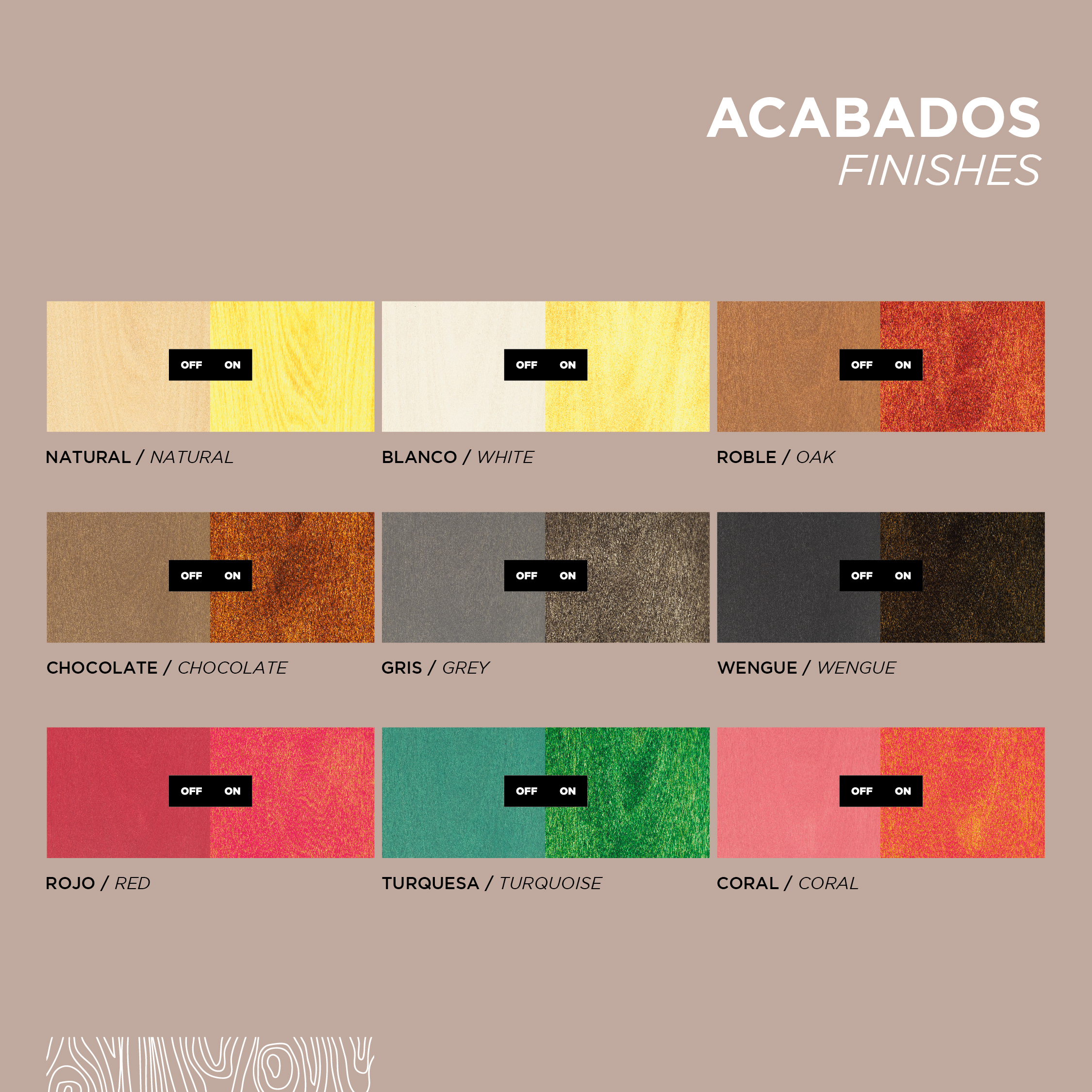 | color | chocolate coral grey natural Turquese Wengue oak red white |