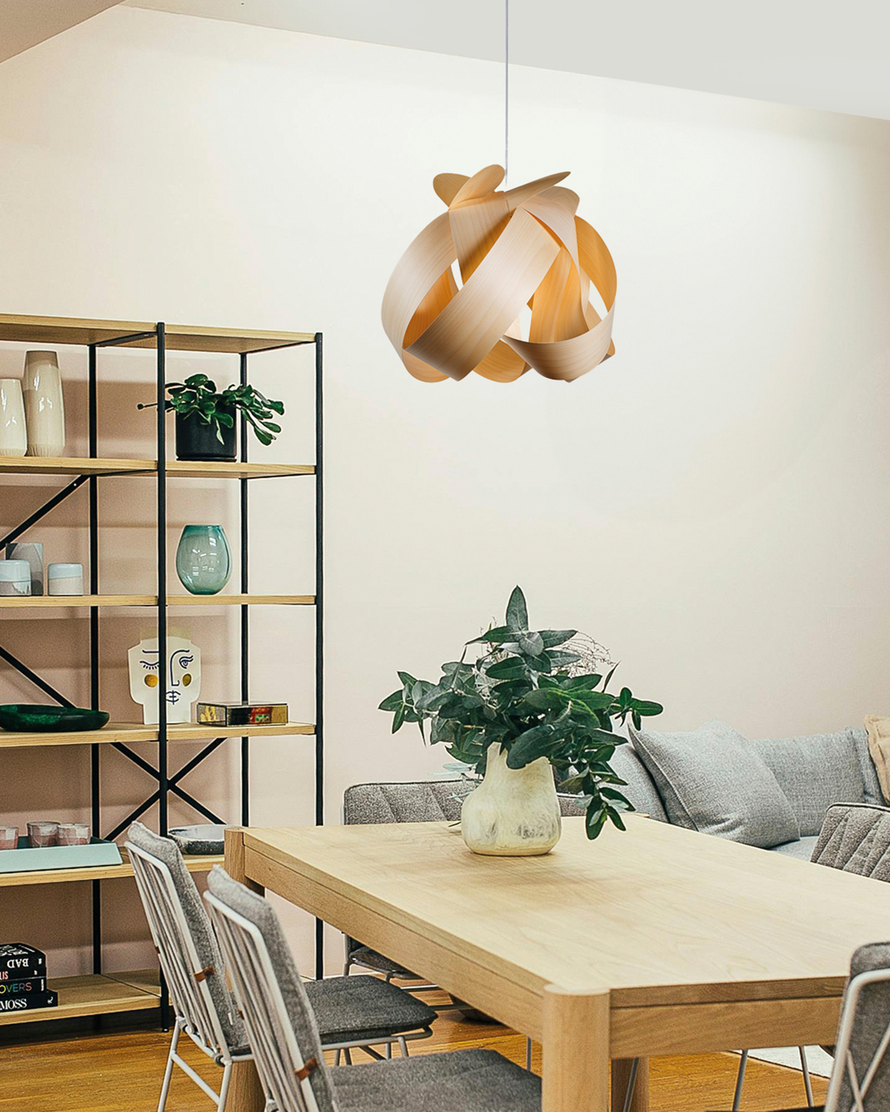 Perfect for those looking for an artistic and modern wooden pendant lamp, this handcrafted piece transforms living rooms, dining rooms, or studies with its unique style.