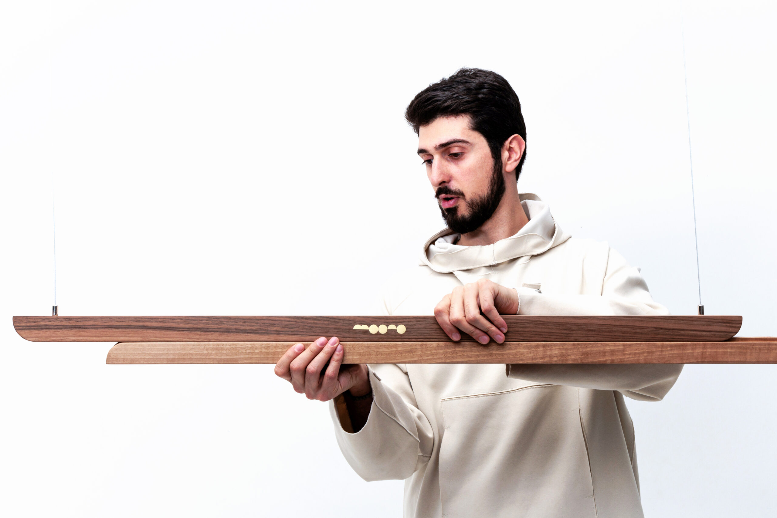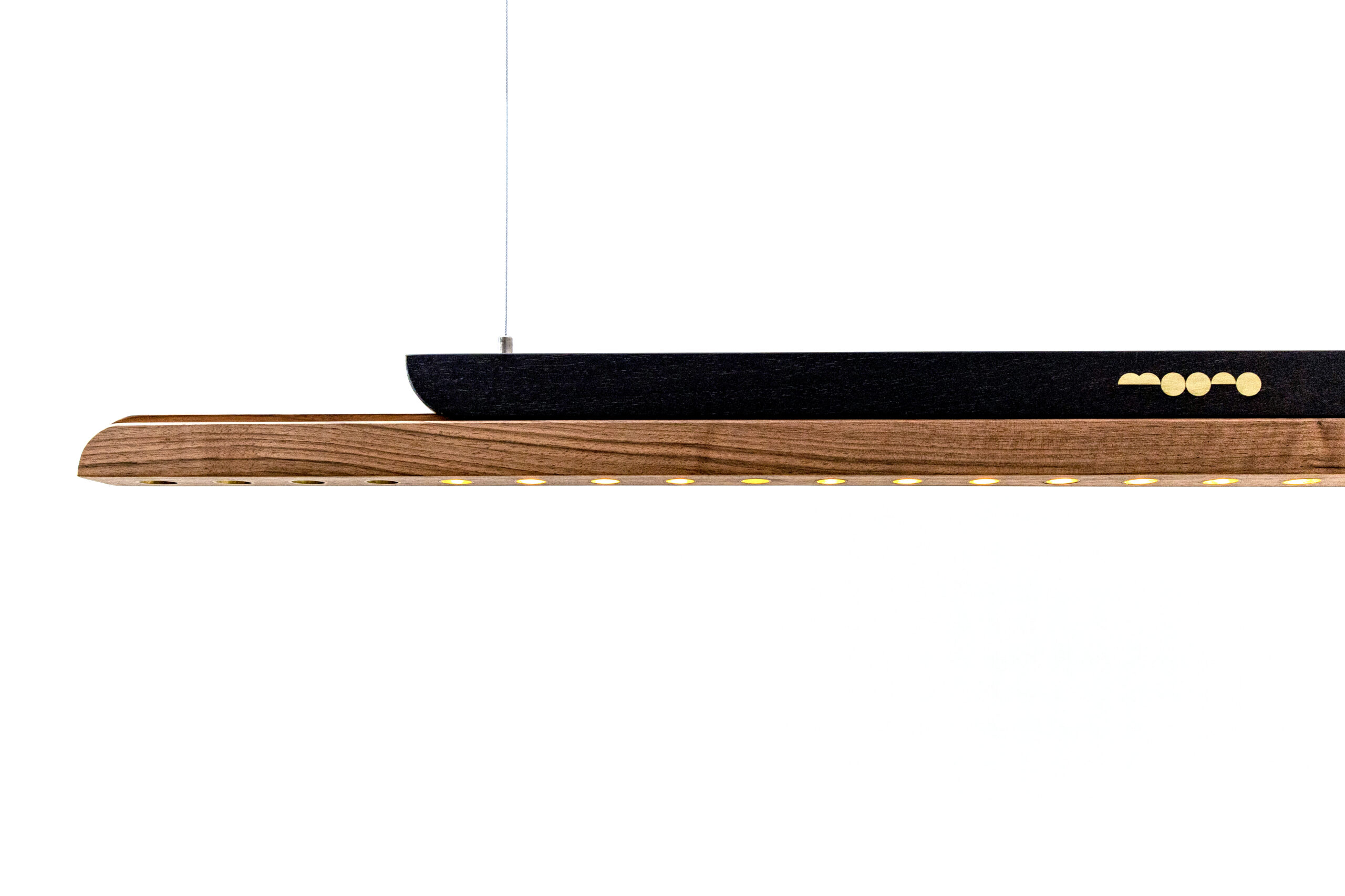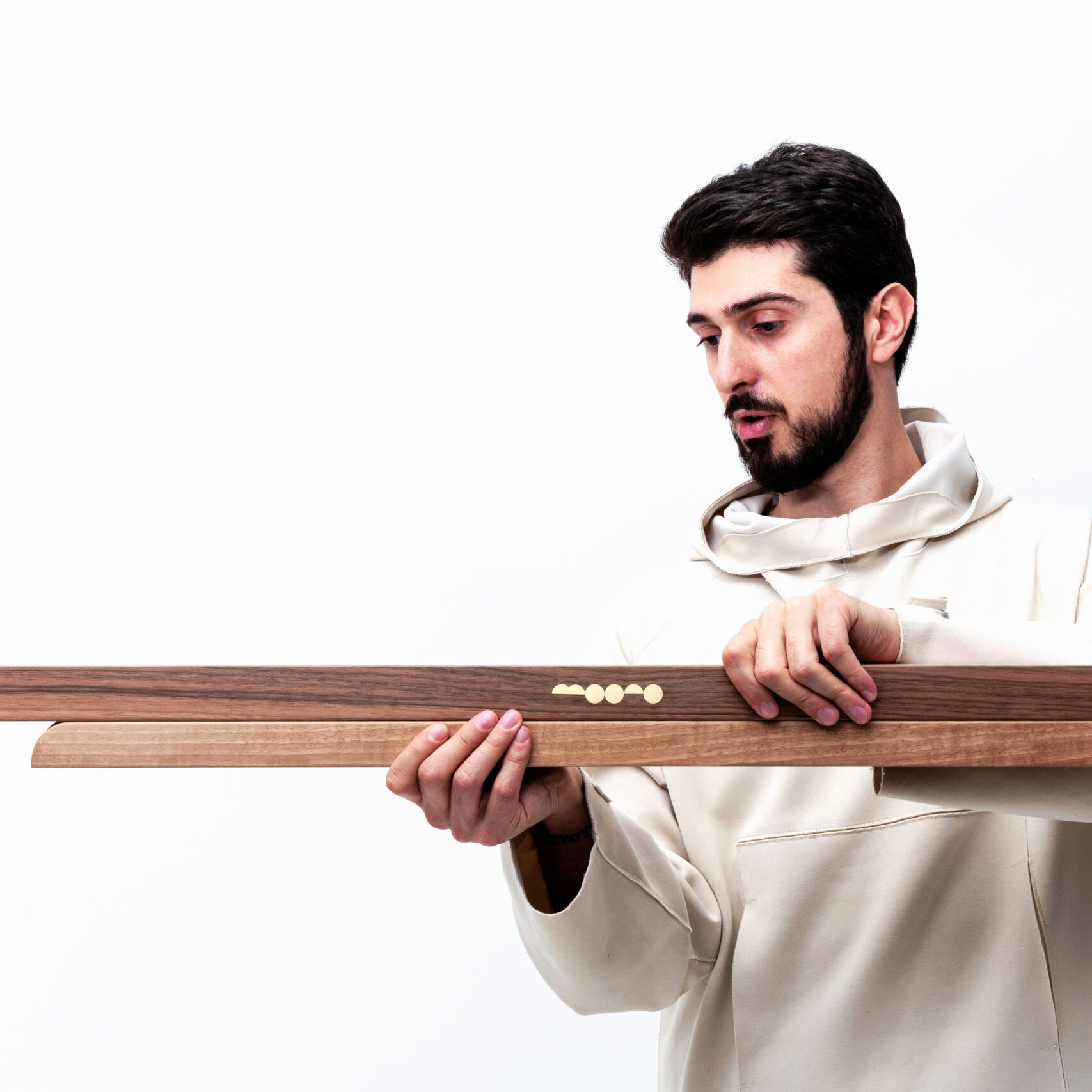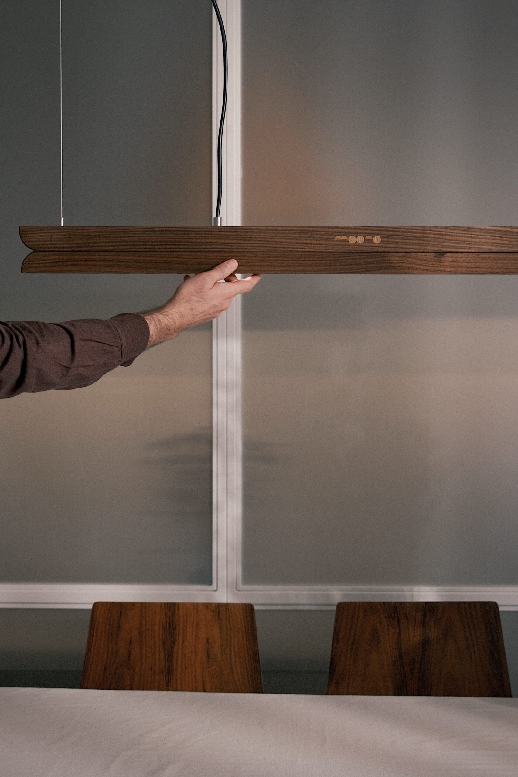 Moono is an innovative sliding light that transforms adjustable lighting into an art form. Handcrafted from premium oak or walnut, with refined brass and aluminum accents, it blends timeless elegance with modern functionality.