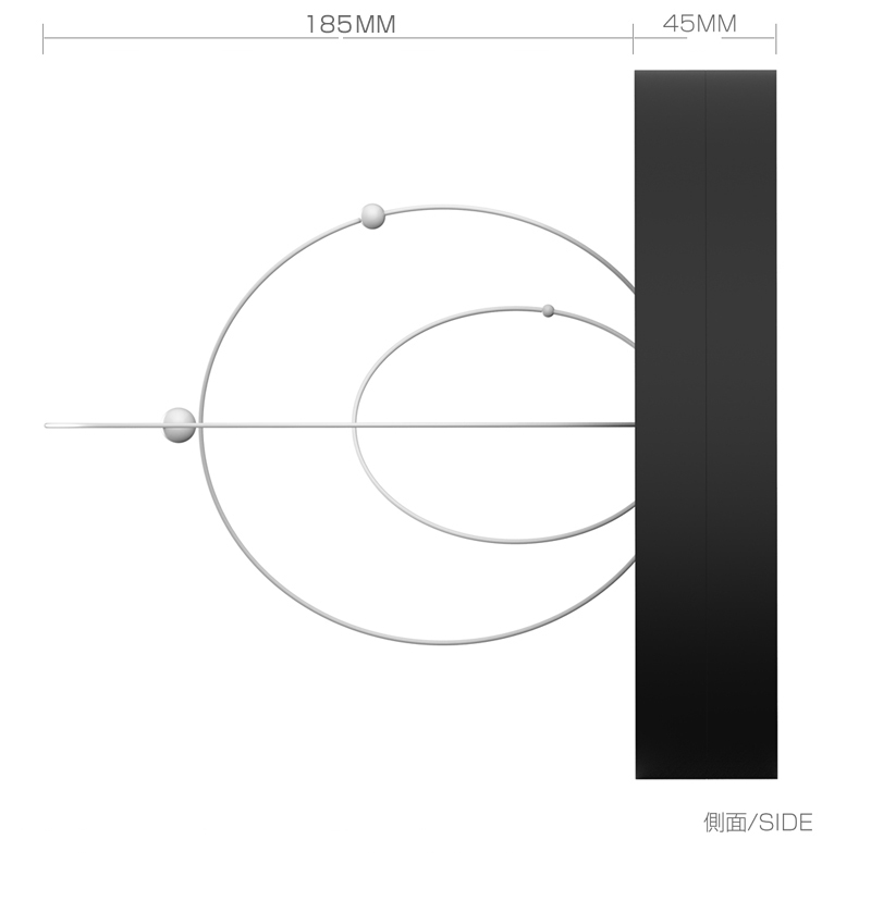 Time exists because the earth revolves around the sun and the moon revolves around the earth. The solar system clock vividly restores the connection between time and planet rotation. The little ball on the second hand represents the moon, the ball on the minute hand represents the earth and the big ball on the hour hand represents the sun. The different rotation speed of the pointer vividly restores the moving status of three stars.