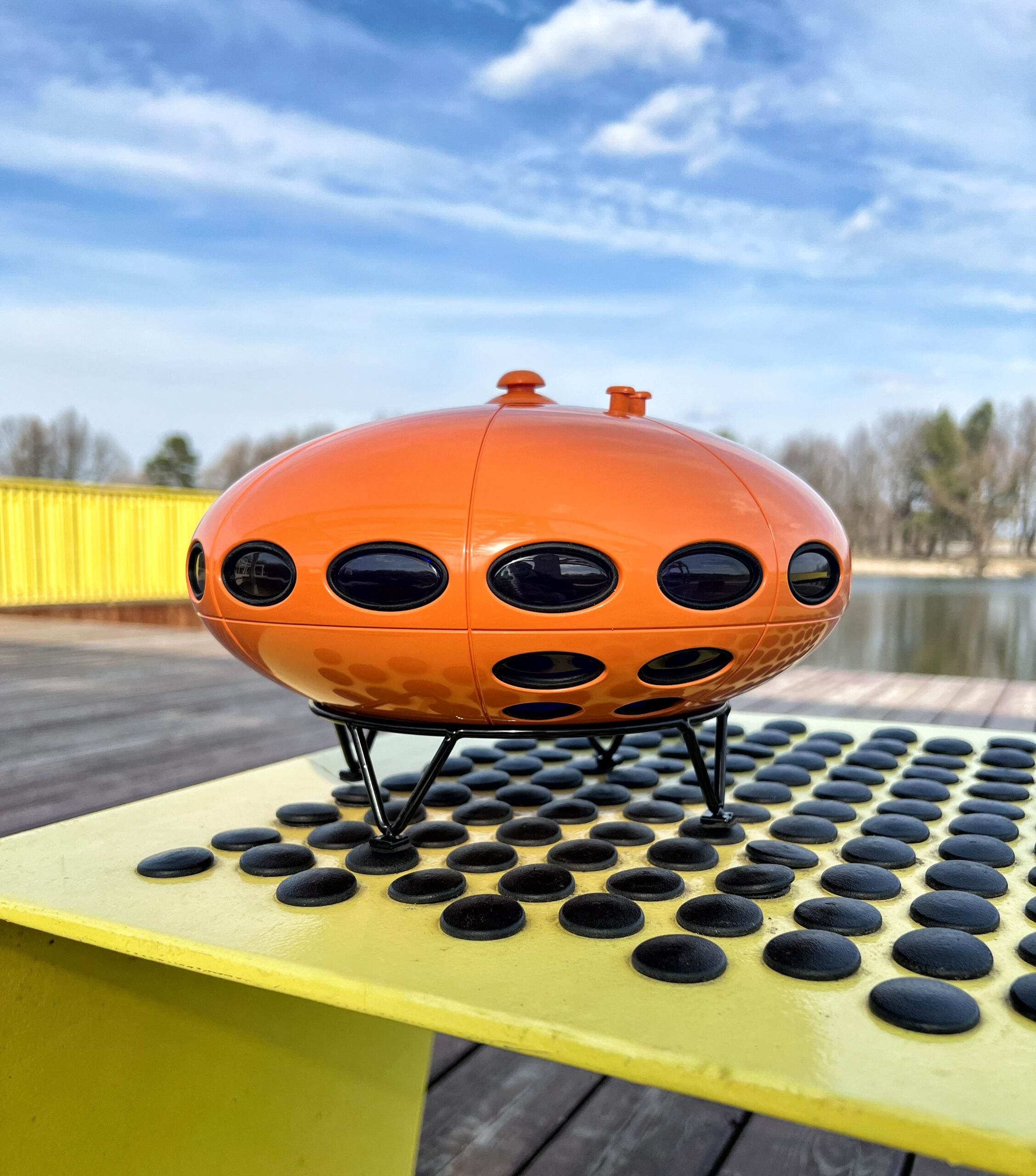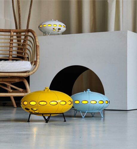 This is an advanced night light designed in Space Age style. It includes 3 light modes and 7 light colors. We believe that this faithful and carefully proportioned miniature — with the added functionality of a lamp — will be a pleasant and fun reminder of the times of the Space Age for you. Let your children dream, and you choose the right color and brightness and enjoy the pleasant glow of the UFO.