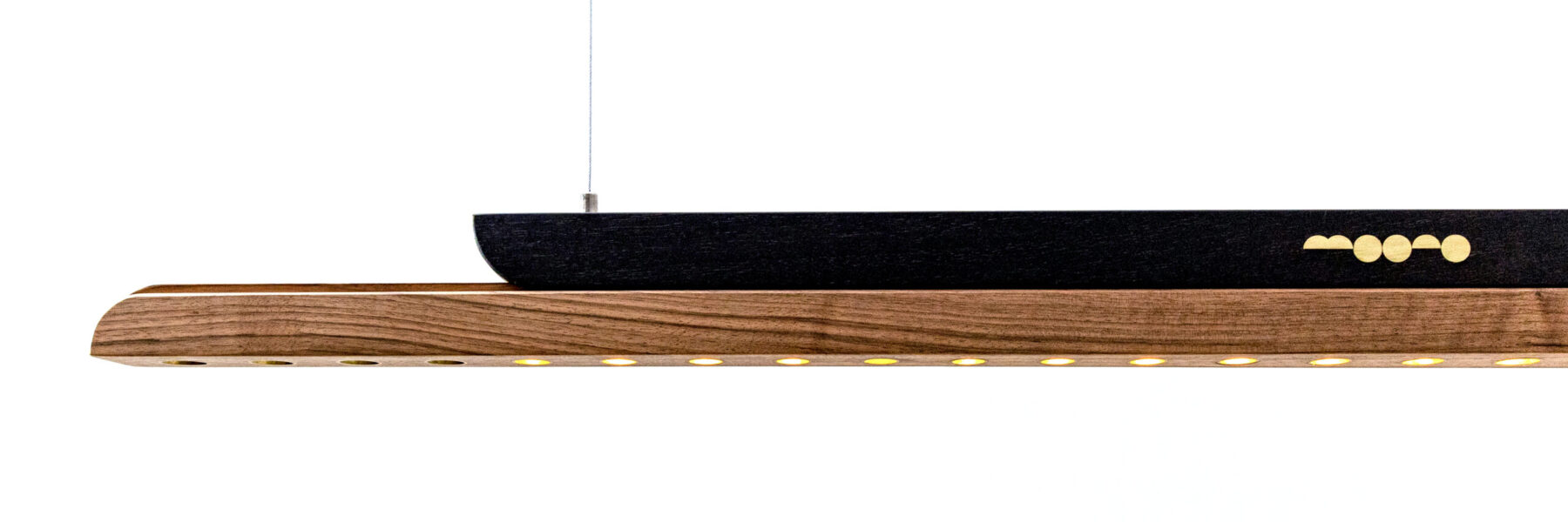 Moono is a sculptural sliding pendant light, handcrafted from natural laminated oak or walnut and infused with the elegant strength of solid brass. Designed and produced in Georgia, it reflects a deep commitment to material honesty, minimalism, and precision engineering.