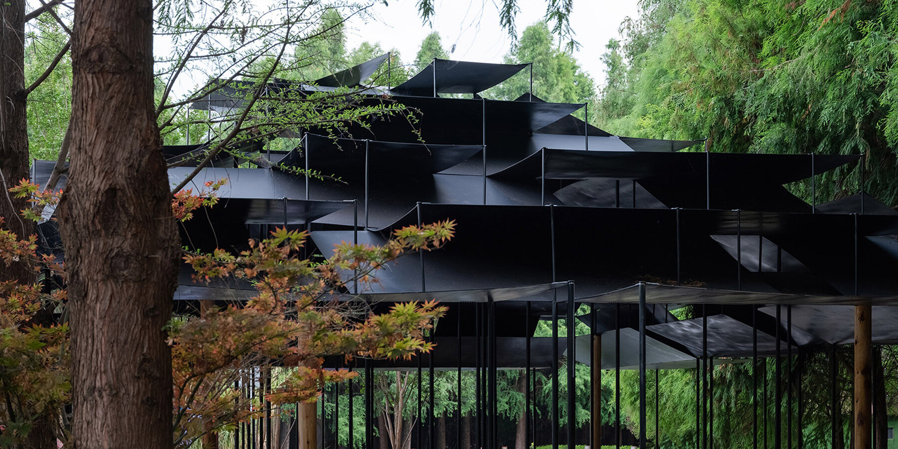 Dec 02, 2025atelier deshaus tops laoyuting pavilion with fragmented modular roof in chinese wetlands architecture