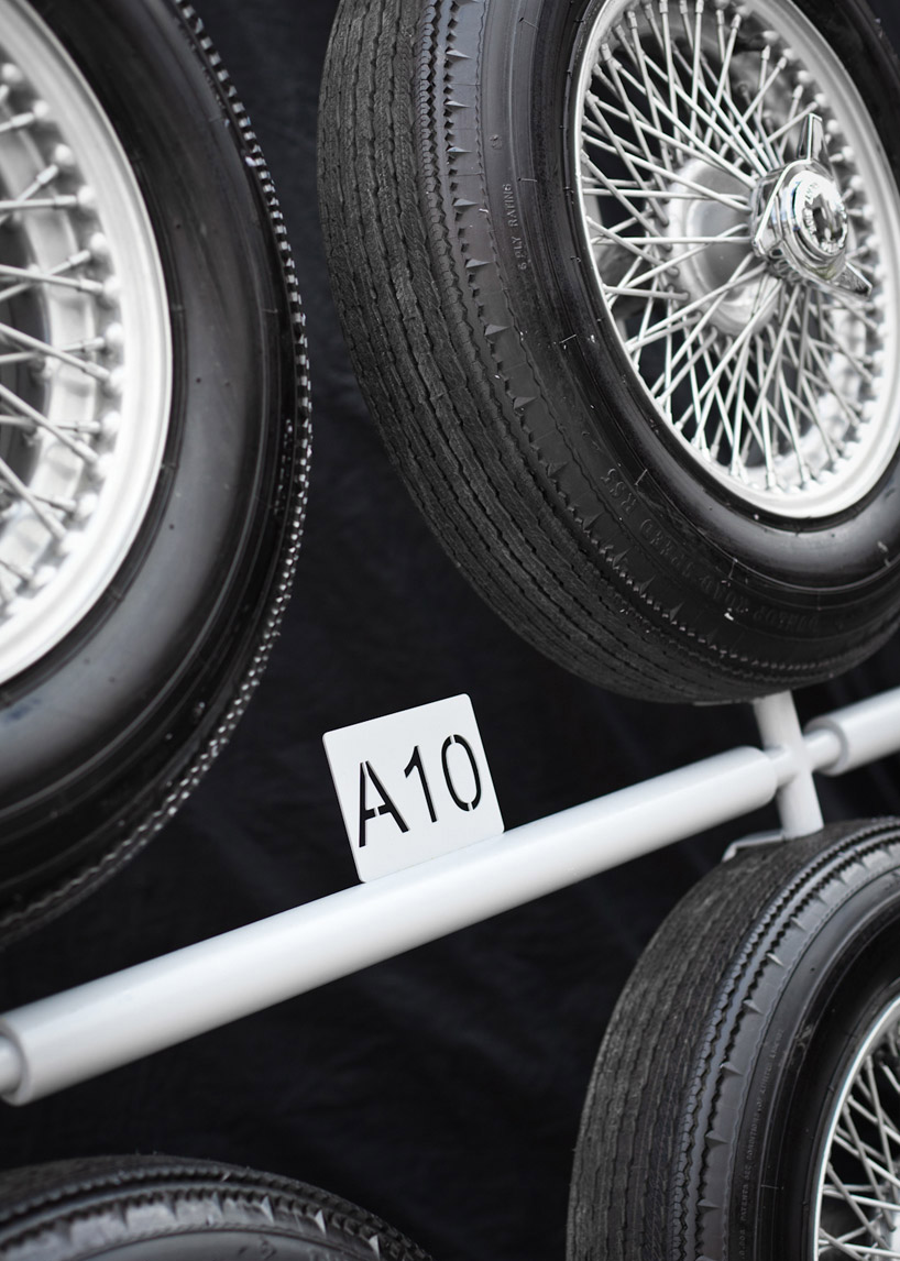 detail of the model frame and aston martin 16 inch steel spoke wheels